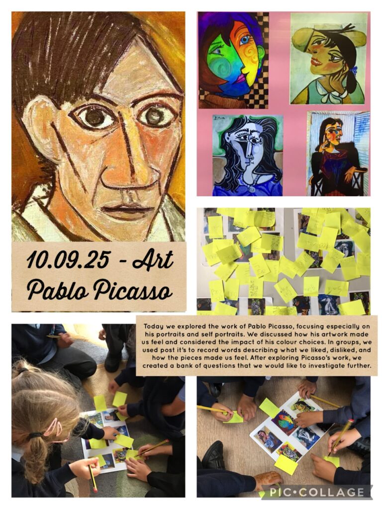 Today we learned all about what a portrait and self-portrait are, and we discussed how artists use them to express identity, emotions, and creativity. We explored the work of Pablo Picasso, looking closely at how his style changed over time, from realistic portraits to his more abstract and cubist pieces. We talked about how he used shapes, colors, and lines to show feelings and personality in unique ways.