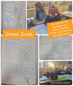 We have been using the VR headsets to research and understand more about the Ancient Greek Gods. We then presented the information we compiled into non-chronological reports based on everything we discovered.
